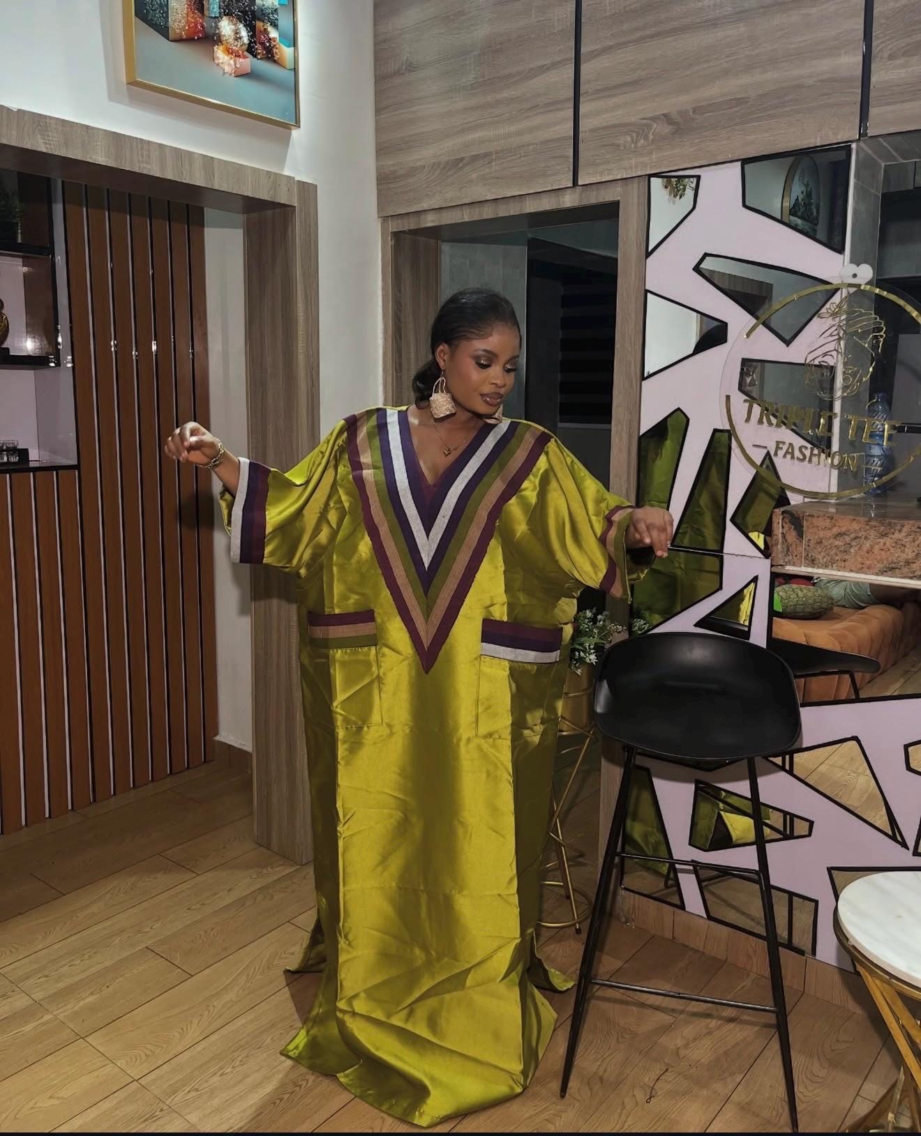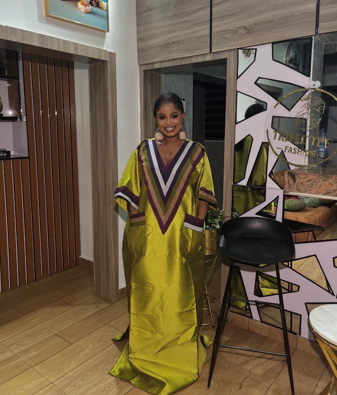 Outfit description - Made from mikado and aso oke. One size fits US size 8 to Size 24, It is a free size boubou.